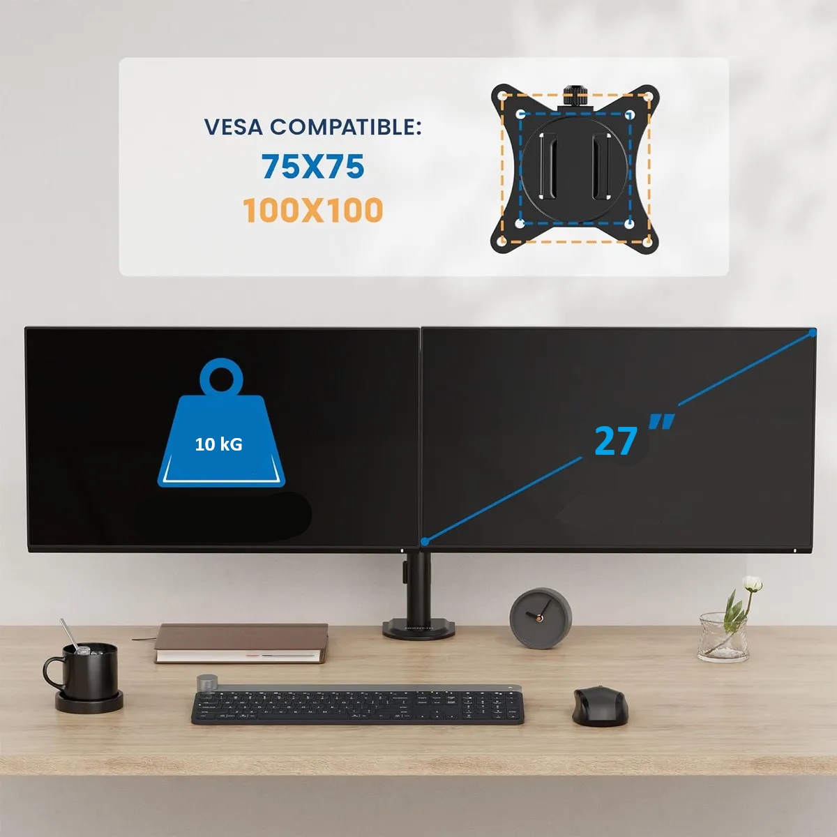 * Monitores hasta entre 13″ y 27″.