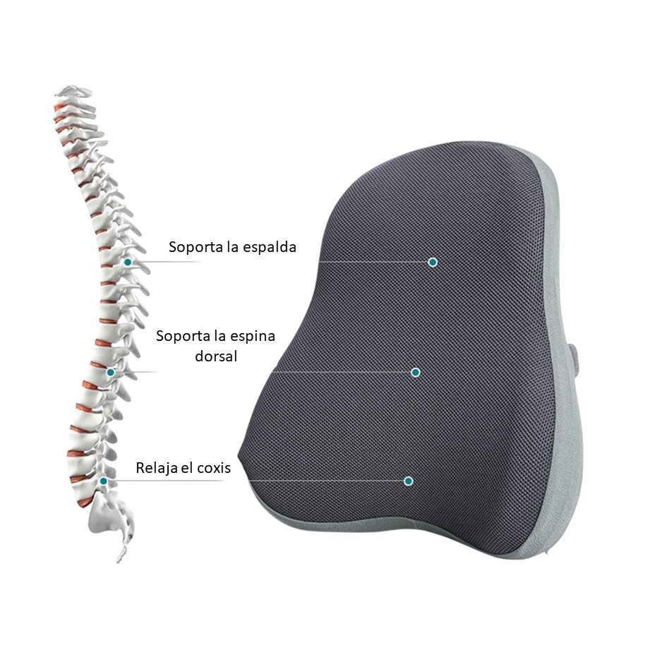 Características: Es ideal para utilizar en sillas gracias a su forma ergonómica y material de relleno de espuma viscoelástica.