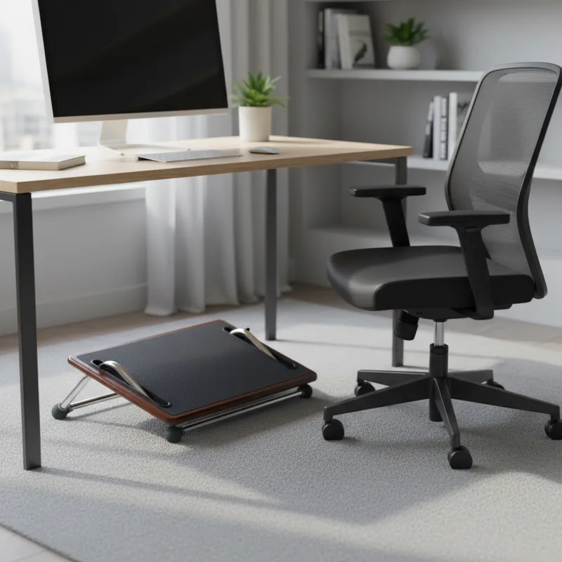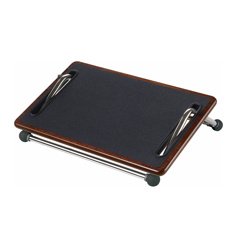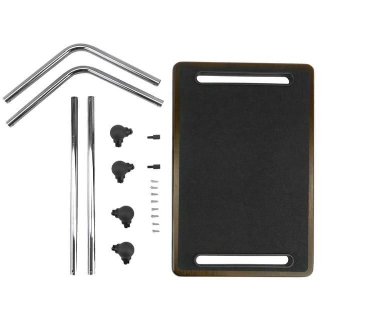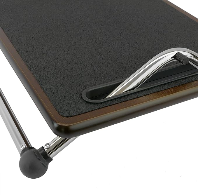 Material: Superficie en madera aglomerada (MDF), superficie en caucho corrugado antideslizante, estructura en tubo cromado y base con topes en caucho antideslizante.