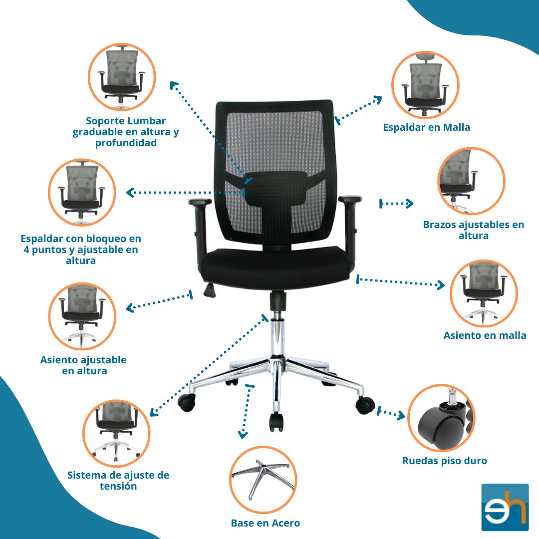 * Soporte lumbar graduable en altura y profundidad.