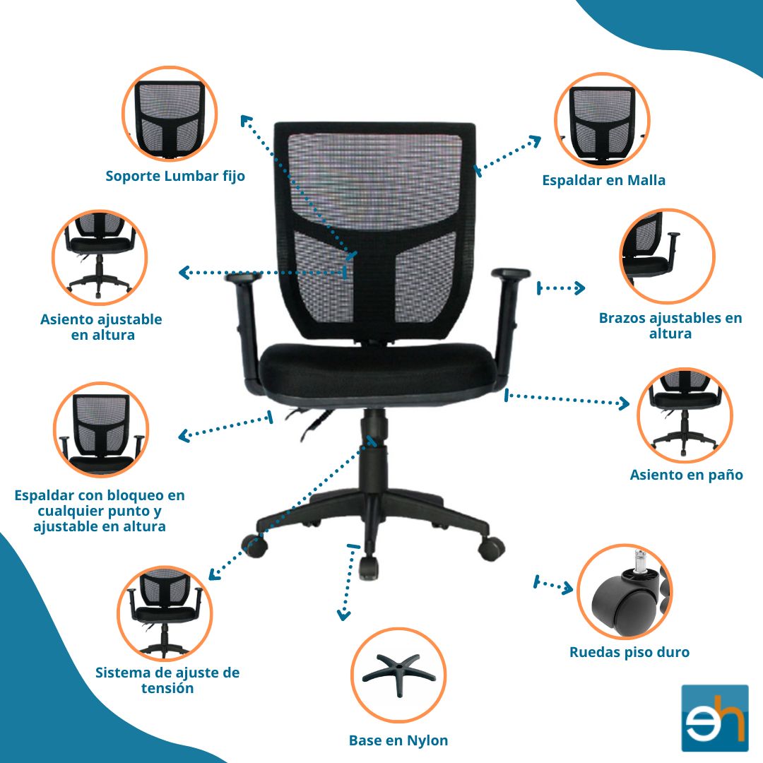* Ajustable en ángulo y altura.