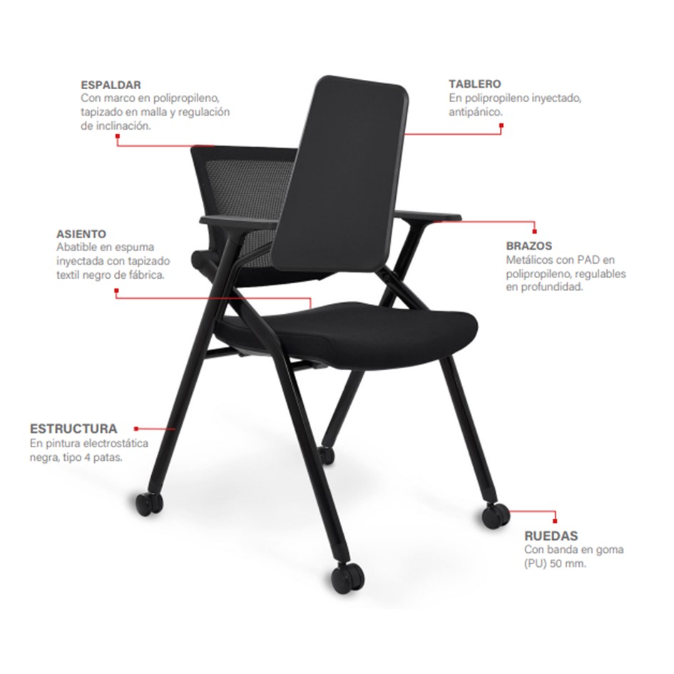 Características: Su diseño ergonómico de fácil almacenamiento se adapta a diferentes espacios educativos.