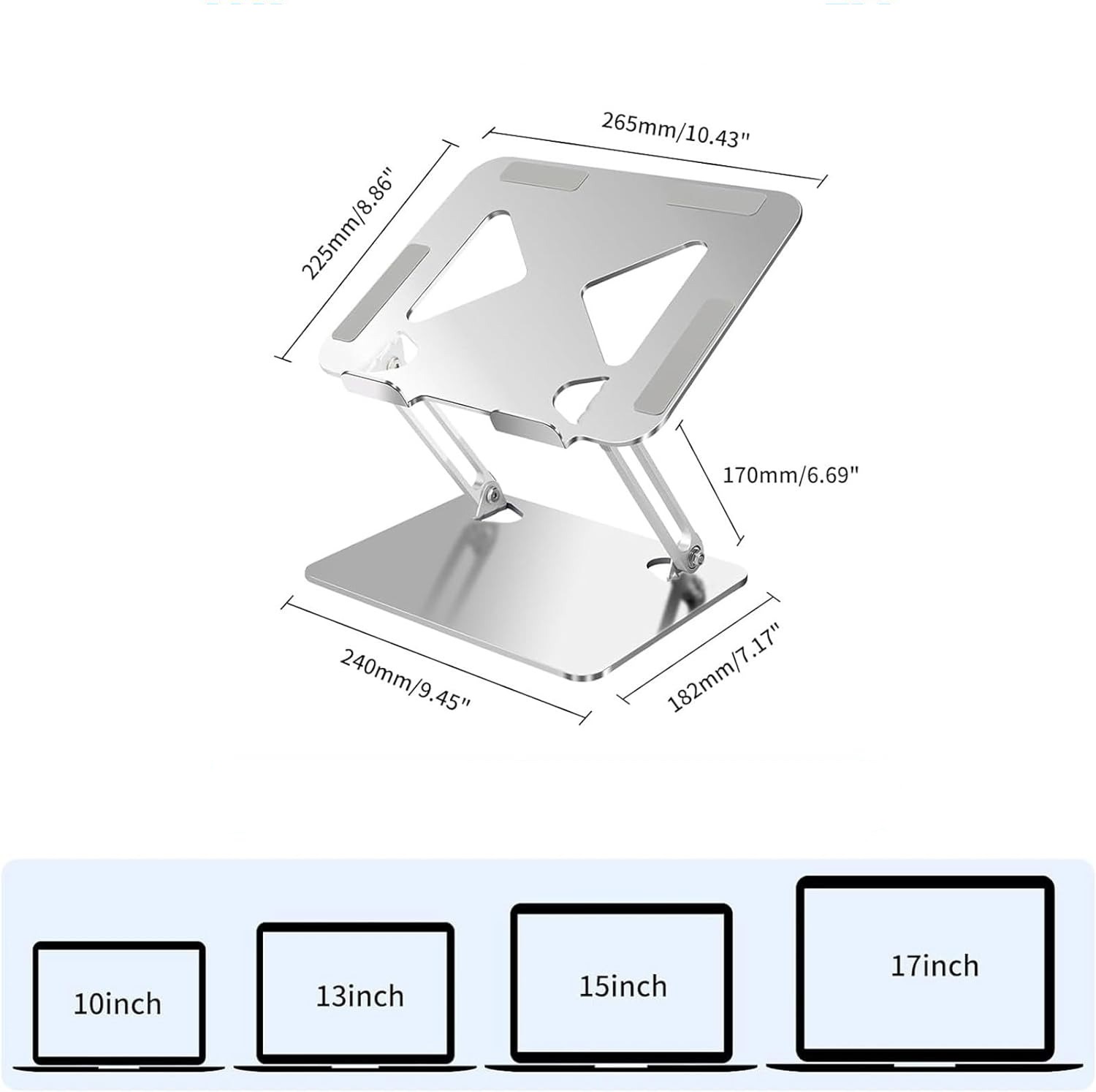 * Soporte ajustable para portátil o tablets desde 11″ hasta 17″.