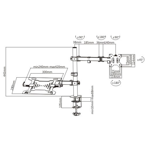 Ajustes: Alcance máximo horizontal de los brazos 40 cm.