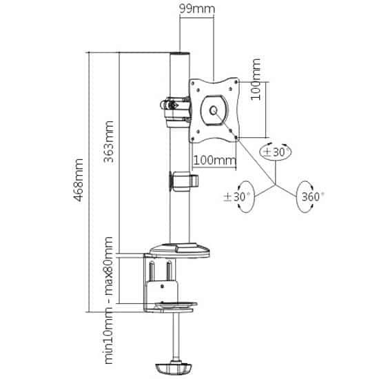 * Horizontal del soporte: -/+ 90° izquierda y derecha.
