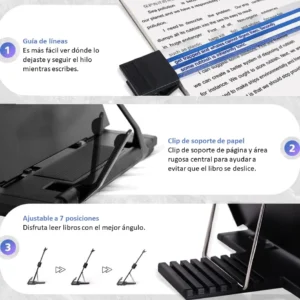SOPORTE PARA DOCUMENTOS PREMIUM Ref: SD-OSPN Uso: Oficina y hogar Características: ajustable con 7 posiciones para mejorar la altura y